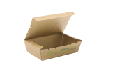 Green Choice range of cardboard snack boxes are very popular in NZ markets. They pre-constructed and easy to close and seal. They are made of card and lined with PLA, a plant-based plastic, and not a petroleum-based plastic. As food contamination is not a problem, the waste container can be sent to a landfill (to eventually breakdown into plant matter) or sent to a commercial composting centre (for conversion into compost).�