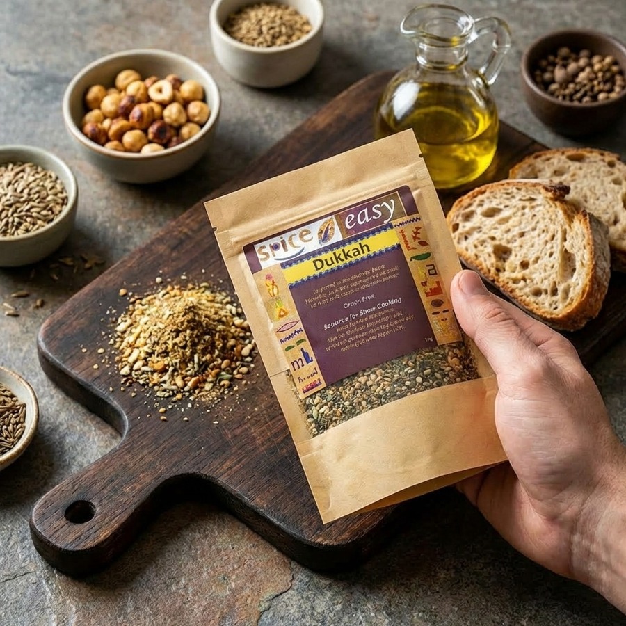 More than just a spice blend, Dukkah is an experience. The classic way to enjoy it is to dip fresh bread into extra virgin olive oil and then into the Dukkah, creating a perfect bite of crunchy, savoury, and earthy flavours. Its versatility makes it a must-have for easy entertaining and adding a gourmet touch to quick meals.