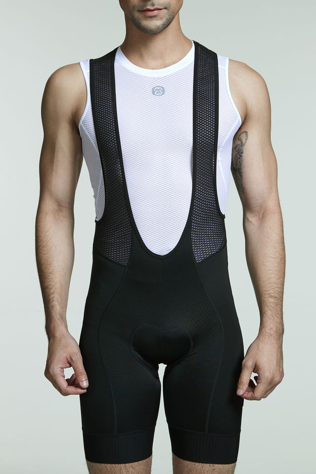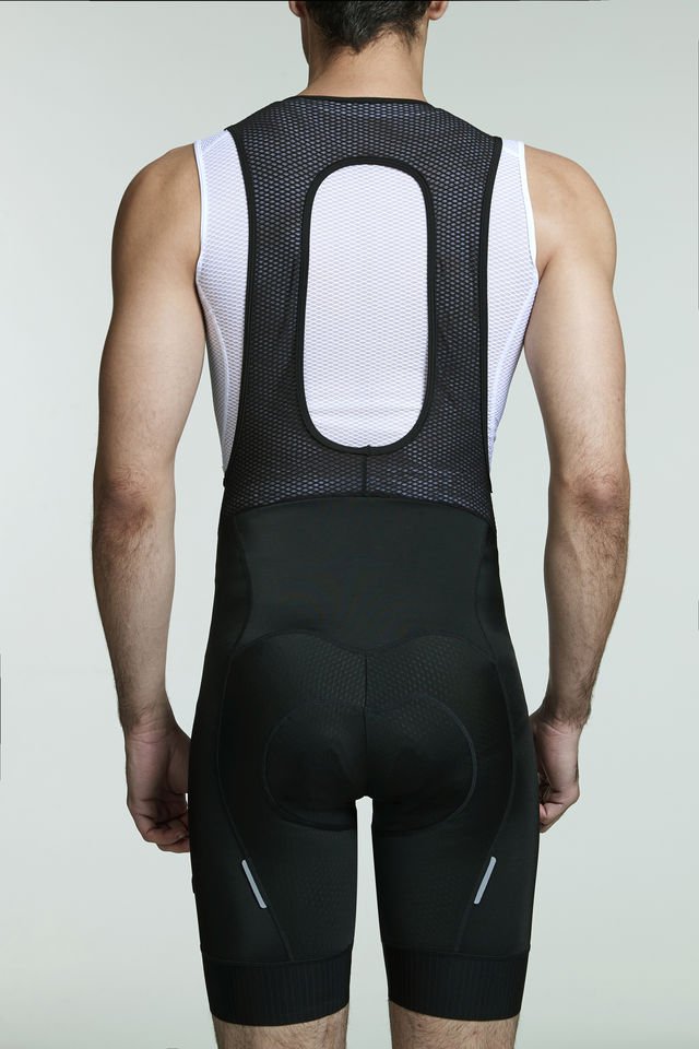 These are the bib short equivalents of the Lazyboy armchair, ultra well-made and super comfortable for time in the saddle. The 'Long Haulers' make use of Italian style with eye catching red leg grippers and a high quality Armadillo chamois. The embossed lycra adds to the visual appeal, adding subtle differentiation from the bib short herd. These ultra-flexible and multi-panel designed bib shorts are aimed to fit to perfection and work with you rather than against. You'll appreciate the smooth and wide bottom grippers and the ultra-comfortable v-shaped waist design (especially after a long lunch!); while the reflective strips on the flanks make sure you're seen on the road. Incorporate one of our cycle tops and you'll be set for all conditions. These should form the base to your cycle clothing arsenal.