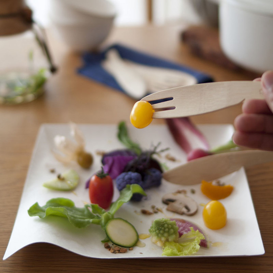 This beautiful elegantly formed bamboo cutlery is designed to pair with the WASARA plates and bowls. It has a clever slot on the side so you can attach it to any piece during use. Once finished with it can be discarded into the compost or landfill with the knowledge it will break down safely.