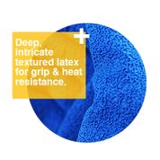 Made from comfortable, cool cotton and void filled coated dipped latex to produce a super wrinkle finish that minimizes the contact surface area of the glove on high temperature items.