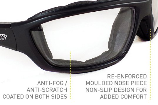 - Panoramic Vision with a soft moulded EVA positive seal to maximise protection in dusty environments.