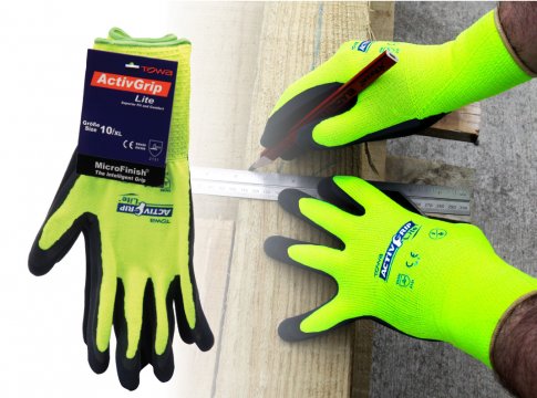 Activgrip Lite hi-vis glove with MICROFINISH' latex coating for superior grip