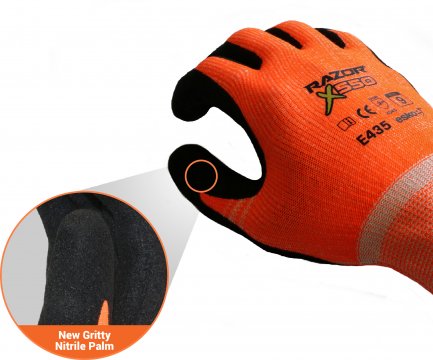RAZOR X550 Glove, HPPE Cut Resistance Level 5, Hi-Viz Orange, Nitrile coating, Sizes 7 - 11.