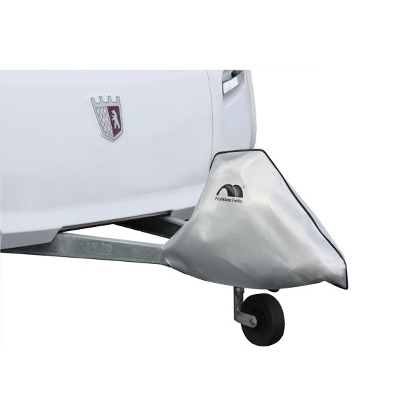 Due to their pocket shape, the hoods fit easily over the drawbar of your caravan etc.. Delivery includes a bungee cord strap for secure fixating.