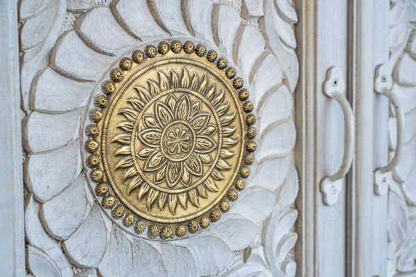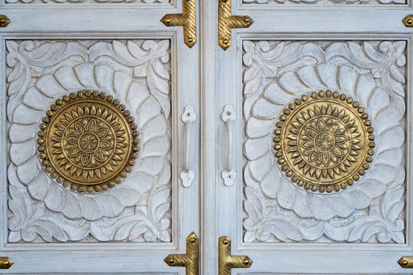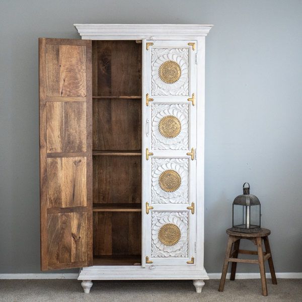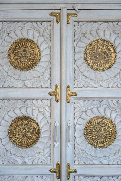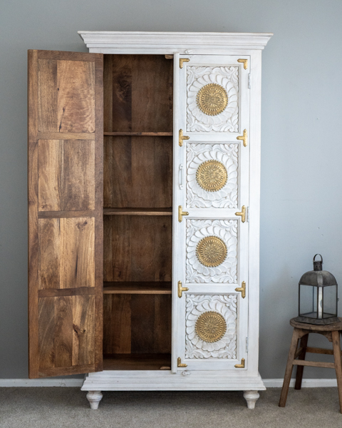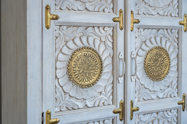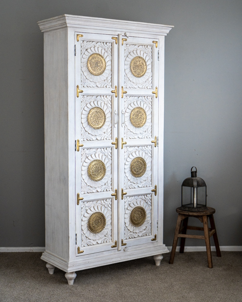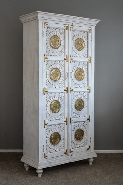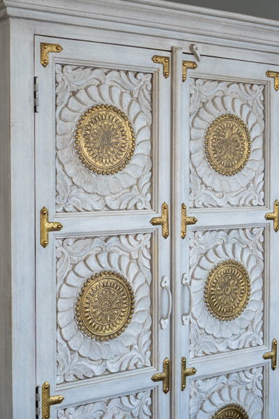 An utterly gorgeous and elegant tallboy with beautiful hand carved decorative design and beaten brass.
