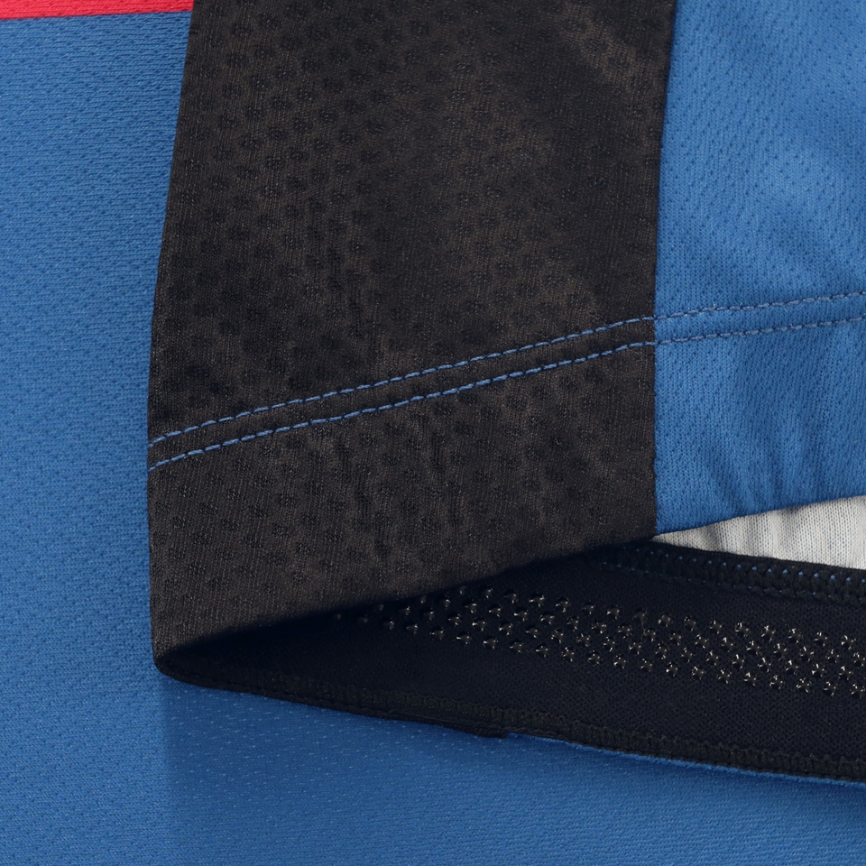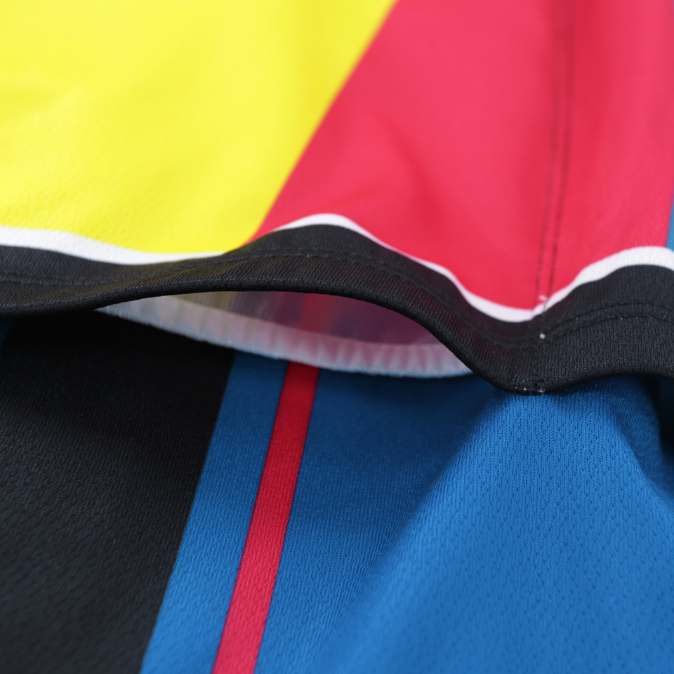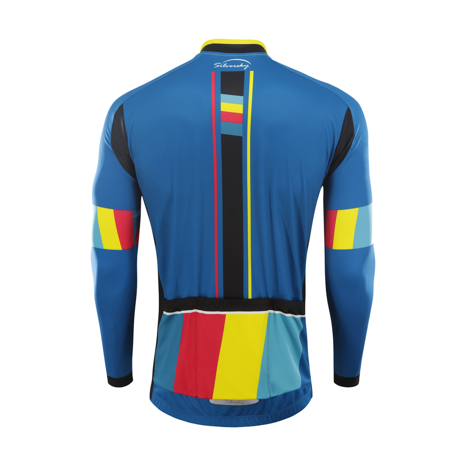 Using the same CoolMax/TopCool fabrics as our short sleeve cycle jerseys 'The Skyline' adds long sleeves for additional protection from the elements. It doesn't stop there, the jersey is further enhanced via 3M reflective strips on the back, long lasting sublimation colour impregnation, strong jersey grippers on the bottom, and a water-proof pocket at the back...you'll be the envy of your mates.