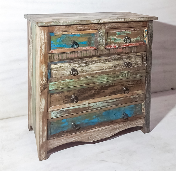 Bring warm neutral style and rustic character to your space with these handcrafted drawers made from reclaimed timber and handcrafted in India. Perfect as a bedroom chest of drawers, living room storage, or hallway statement piece, each unit is beautifully unique. Ideal for lovers of sustainable furniture, earthy neutrals, and one of a kind rustic storage with timeless appeal.