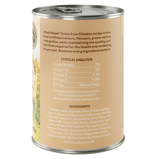 Our Grain Free Wet Range is formulated to be used as a complete meal or added to dry food to supplement your dog’s meal. It has been tailored for dogs who have allergies to grains that can sometimes be included in other dog foods. Black Hawk is 100% proudly made in Australia, dedicated to the good health and wellbeing of your pets.