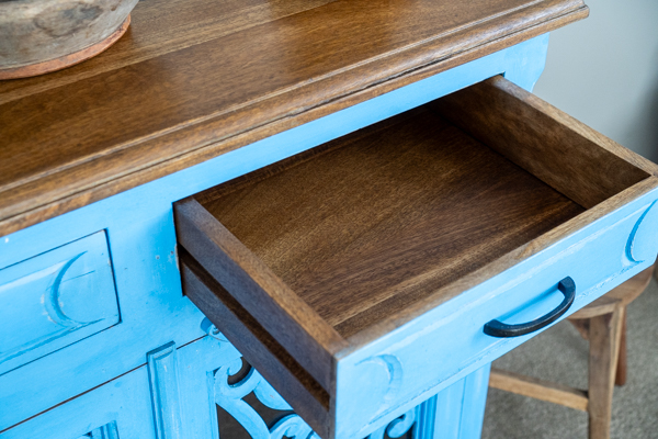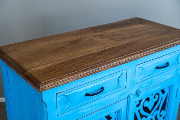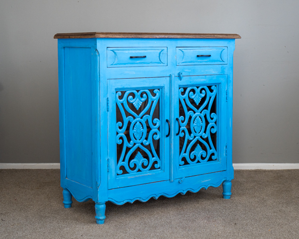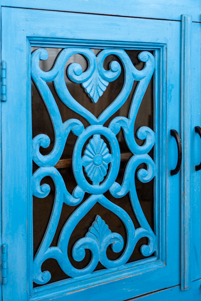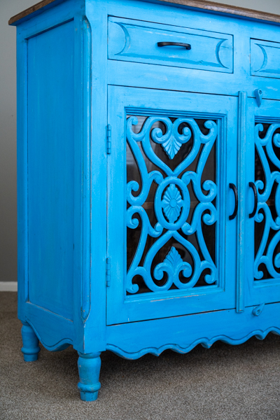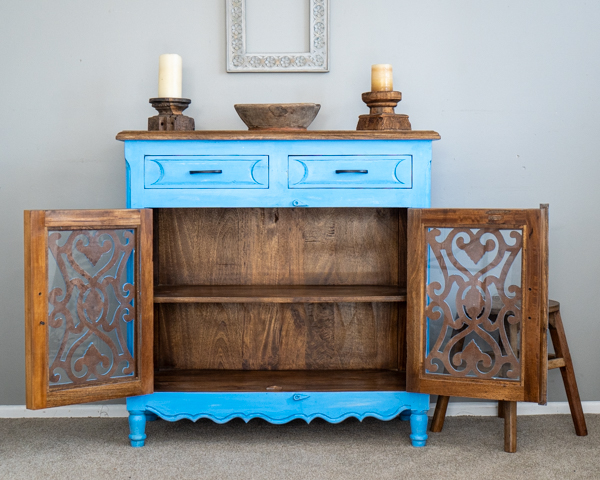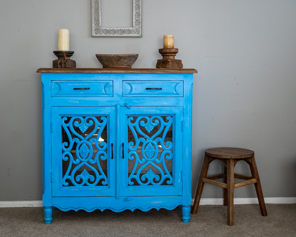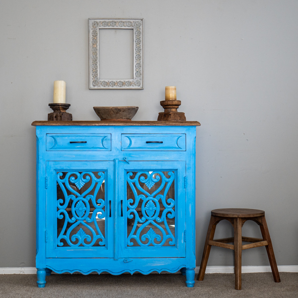 A very elegant and utterly gorgeous sideboard with beautifully detailed work on glass doors. An absolute work of art.