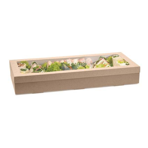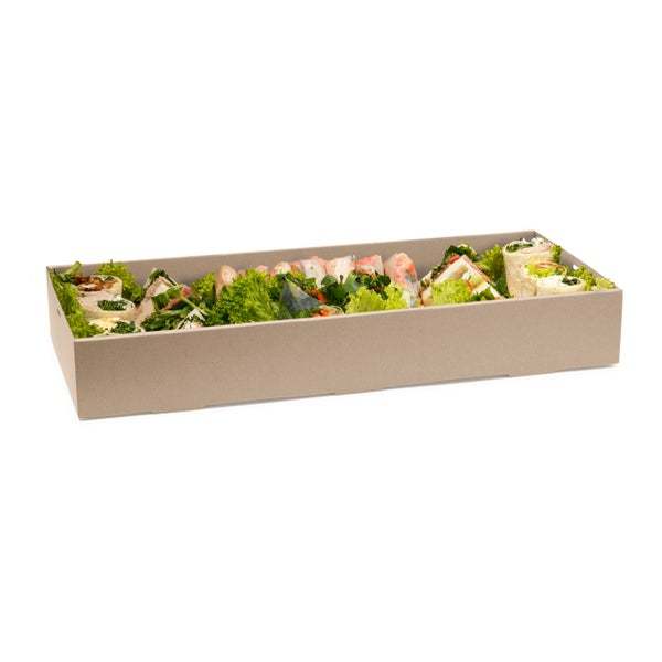 Our catering boxes and lids are made from sustainably sourced FSC™ certified paper. The paper is home and industrially compostable and recyclable in kurbside recycling if clean. BioPak catering trays are available in 5 sizes (XS-XL).