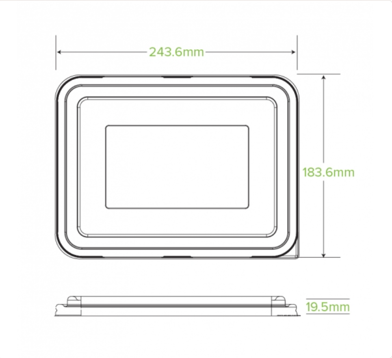 Product size: 243.5mm L x 183.6mm W x 14.5mm H