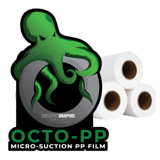Octo-PP is a Matt white polypropylene film, 220 Micron'with micro suction adhesive technology. Low tack,