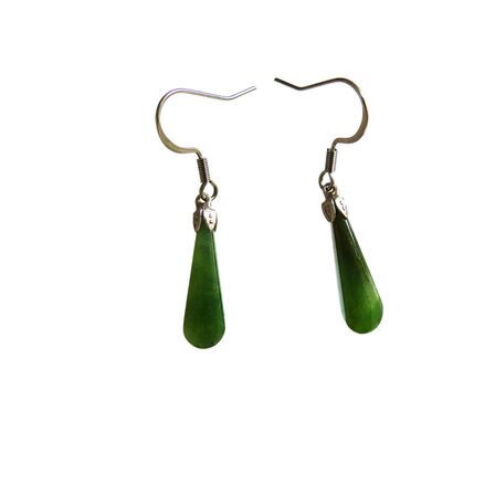 New Zealand greenstone stud drop earrings about 22mm long set in sterling silver. Genuine New Zealand Pounamu (Greenstone), sourced and hand carved in Aotearoa (New Zealand). Pounamu is of great cultural significance for Maori and is believed to enhance mana (prestige) of its possessor. When received as a gift Pounamu is said to gain value as a special treasure.