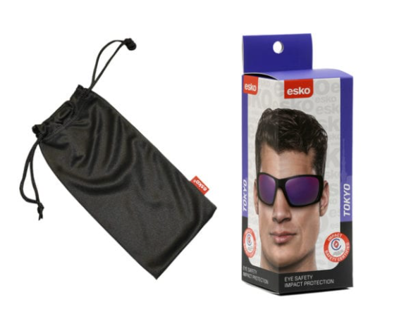 TOKYO Safety Glasses, Matt Black Frame, Lilac Mirror Lens - Esko