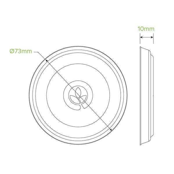 Our plastic-free sample cup lids are made from rapidly renewable sugarcane pulp, a by-product of the sugar refining industry. This sugarcane sauce cup lid is certified home compostable and carbon neutral. It is the matching lid for the 60ml Natural Sugarcane Sauce BioCup (B-SC-60-N), providing a fully home compostable food container.