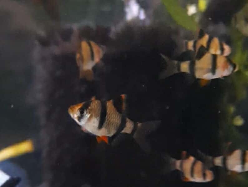 Tiger Barbs. They like to be in shoals of 6 or more.