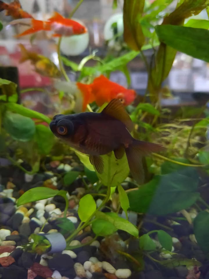 Black Moor are a cold water fish. They are suitable for either a cold water aquarium or a outdoor pond. They are around 7cm