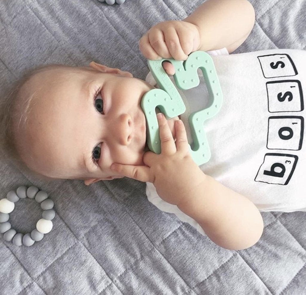 The Cactus design is not only adorable but also easy to hold. Designed with perfect little handholds for gripping, it will not only soothe sore and tender gums, it will also help baby with different tactile sensations as they bend, twist, chew and play! This Teether is stretchy, flexible, and most importantly SOFT on those poor sore gums.