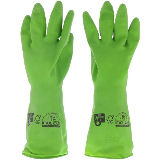These gloves are made from Forest Stewardship Council (FSC) certified latex; e.g. the natural rubber is sourced from a responsibly managed plantation. The workers receive a Fair Trade premium.