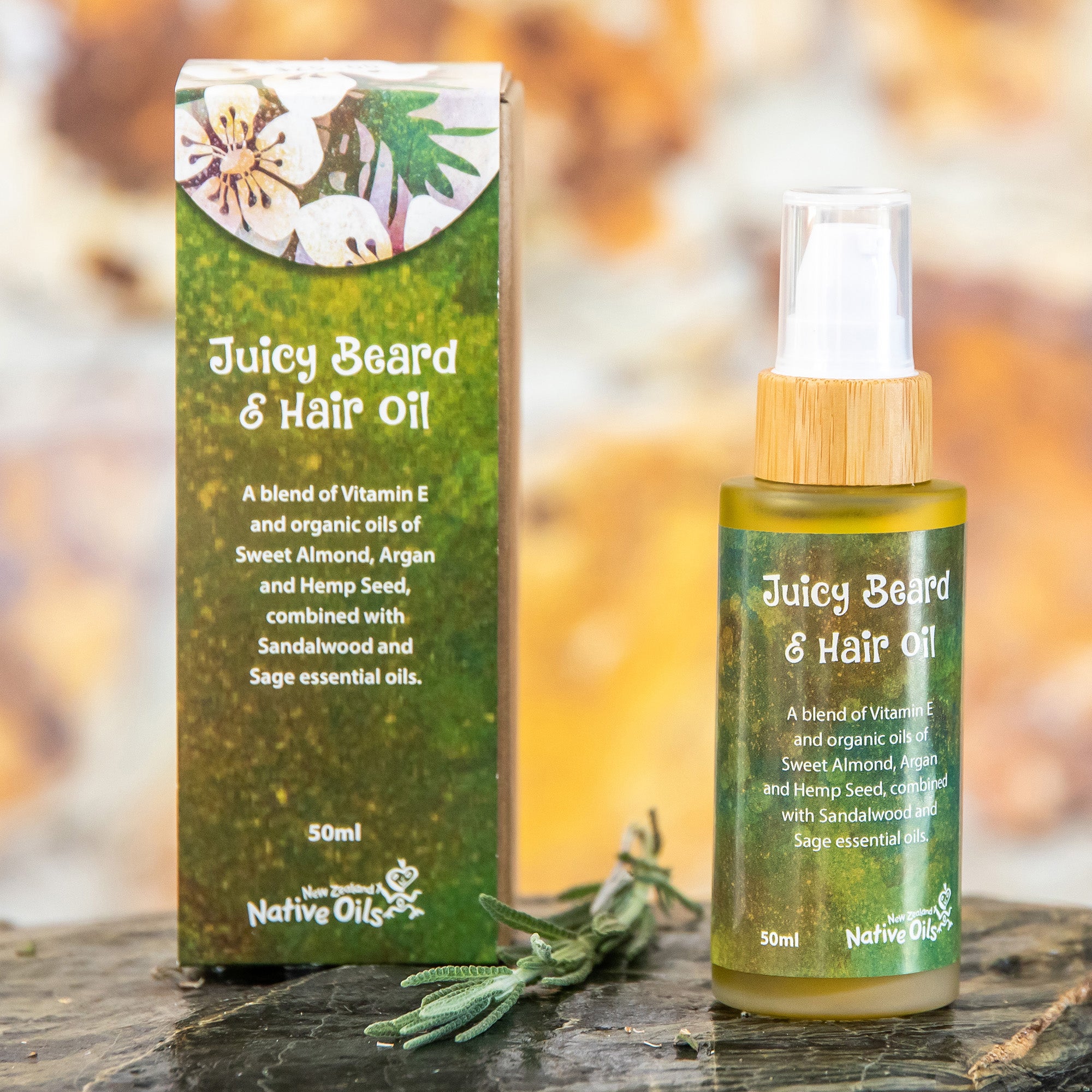 Juicy Beard & Hair Oil is handmade from premium organic oils and therapeutic grade essential oils at this Kapiti boutique skin care workshop.