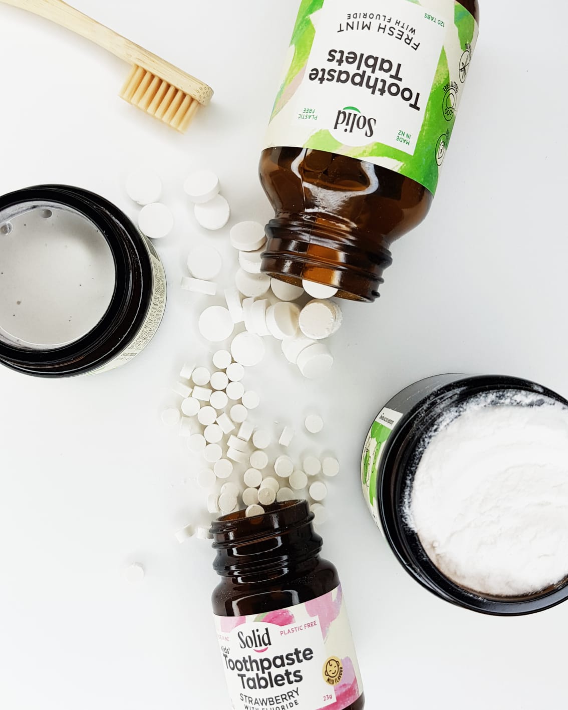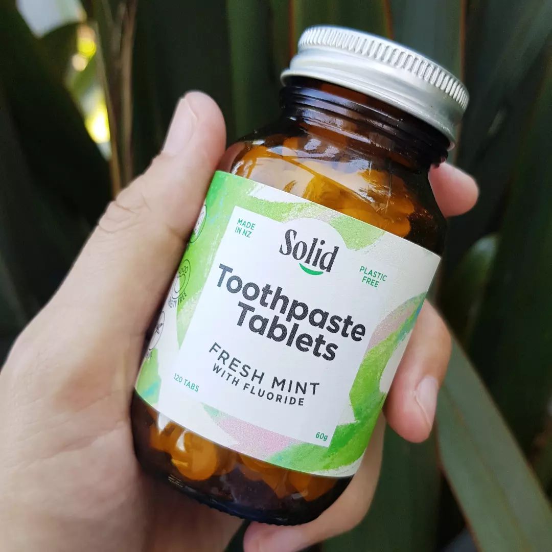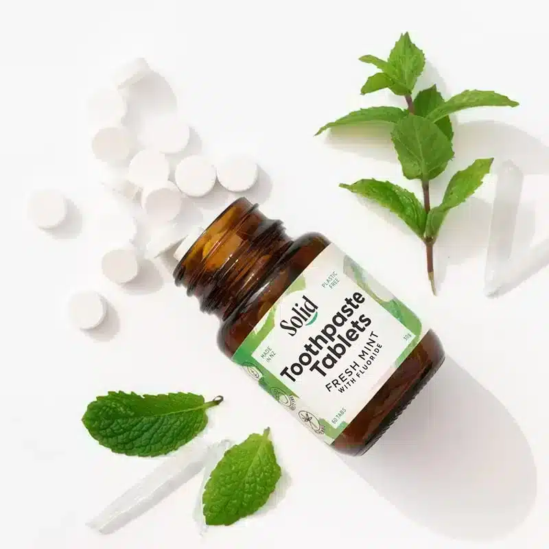 Plastic free toothpaste tablets NZ made, in a glass jar.
