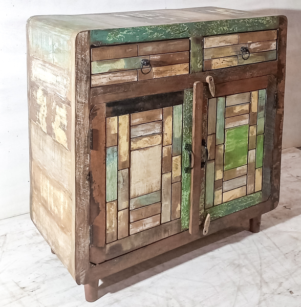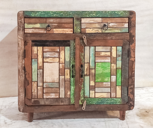 Brings warm Autumn Leaves style to your home with a solid, rustic sideboard handcrafted in India from reclaimed timber and sustainable mango wood. This retro storage cabinet is ideal for dining rooms, living rooms, or entryways, offering generous storage and a timeless vintage look. Every piece is beautifully unique, highlighting authentic natural grain, character marks, and artisan craftsmanship. Perfect for rustic, boho, farmhouse, and retro interiors.