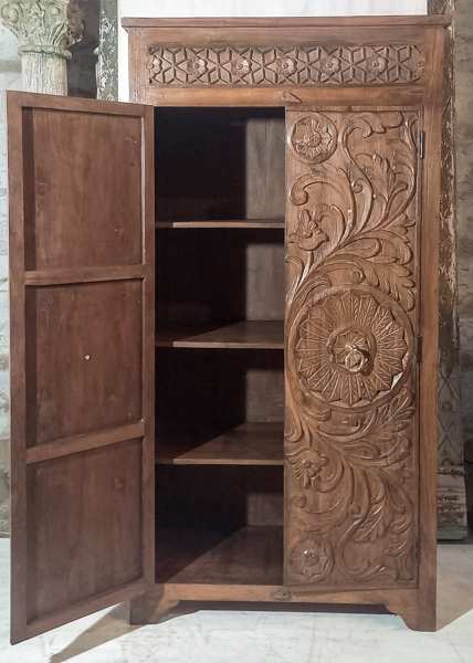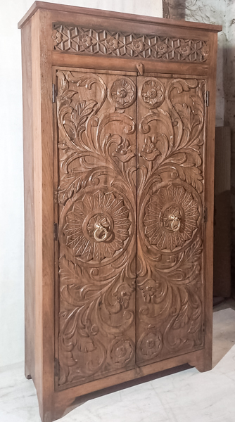 Bring character and warmth to your space with this solid timber tallboy is handcrafted in India from old teak and finished with beautiful hand carved detailing. It offers generous storage and display space while adding a timeless rustic feel. This teak tallboy is a durable, high quality statement piece ideal for bedrooms, living rooms or hallways. Perfect for lovers of vintage teak furniture and solid wood storage.