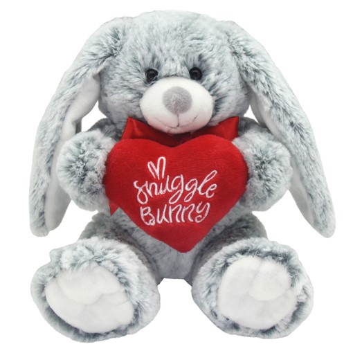 Snuggle bunny is a very sweet, soft and snuggly bunny rabbit. He wears a red bow around his neck and holds a plush red pillow with the words, "Snuggle Bunny" embroidered on it.