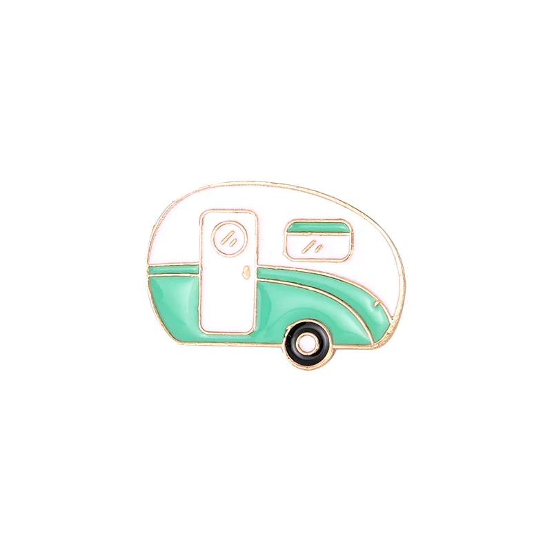 Vintage green and white caravan pin brooch for backpacks, clothes, hats etc.