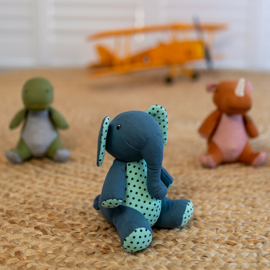 Introducing Levi the Elephant, the sweet and cuddly addition to our plush toy collection! With his deep blue body and charming polka-dotted ears, belly, and feet, Levi is designed to bring joy and comfort to every moment. His soft, round form and endearing expression make him perfect for hugs and companionship. Levi's delightful mint-green and black polka-dotted accents add a playful touch, making him a favourite for imaginative play and cosy snuggles. Crafted from high-quality, ultra-soft materials, Levi is ready to be your child's best friend. Bring Levi the Elephant home and let the adventures begin!