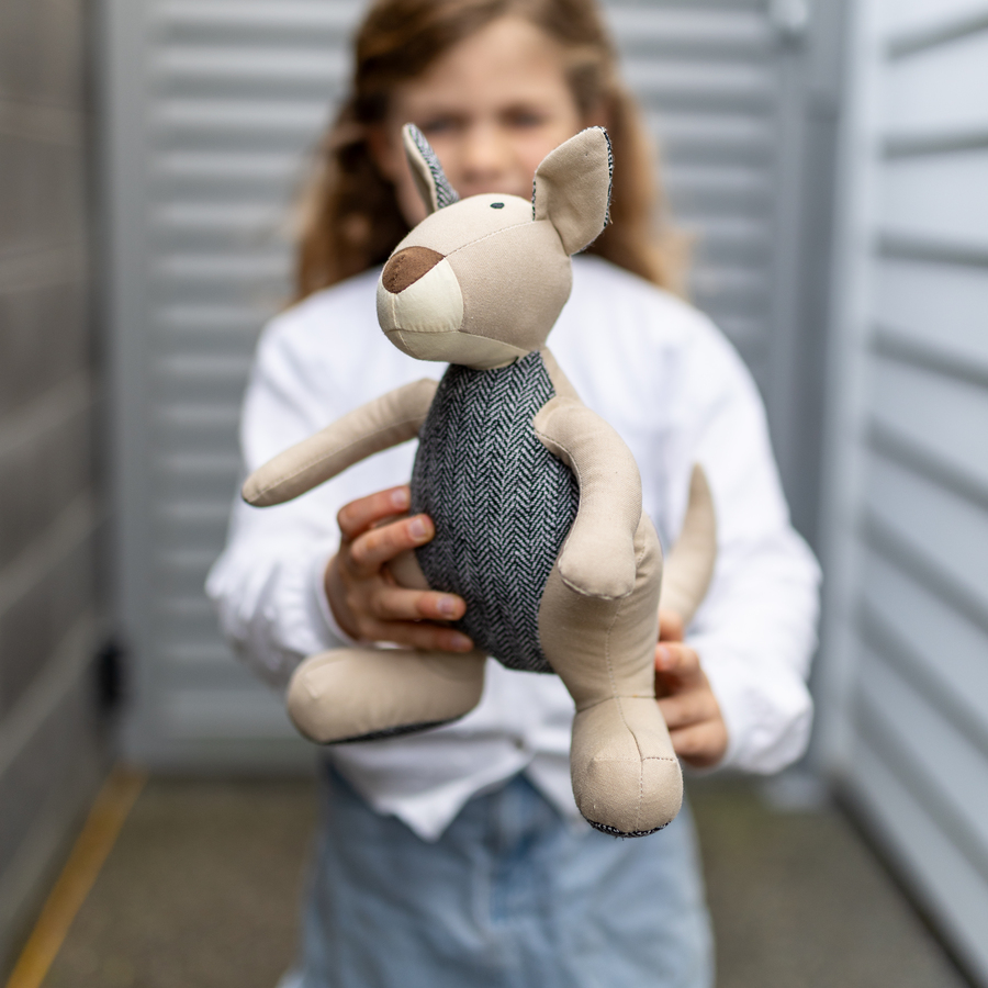 Meet Kazza Kangaroo, the adorable plush toy from Lily & George. With her charming face and soft, herringbone-patterned pouch, she’s perfect for snuggles and playtime adventures. Crafted with high-quality materials, Kazza brings warmth and joy to any child's toy collection, sparking endless imagination and fun.
