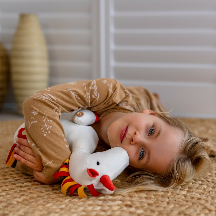 Introducing Tutu the Alicorn, the magical friend your child has been dreaming of! With her pristine white fabric, bright orange horn and hooves, and enchanting golden wings, Tutu brings a touch of fantasy to every playtime. Her colourful mane, adorned with playful ribbons, adds a whimsical charm. Tutu's button joints and adorable flower patch make her both delightful and huggable. Crafted from the finest, softest materials, she’s perfect for cuddles and imaginative adventures. Tutu the Alicorn is ready to soar into your child's heart, bringing endless joy and enchantment. Welcome Tutu home and let the magic begin!