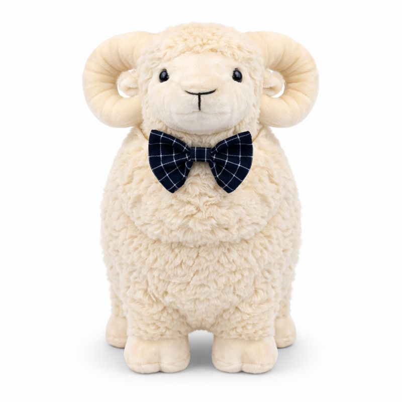 Introducing Liam the Ram, the dapper and distinguished member of our plush toy collection! With his soft, woolly fur and charming plaid bow tie, Liam is designed to bring a touch of elegance and comfort to every playtime. His gentle eyes and curved horns make him a standout companion, perfect for cuddles and imaginative adventures. Crafted from high-quality, ultra-soft materials, Liam is perfect for snuggles and play. Whether it's story time or playtime, Liam the Ram is ready to bring endless joy and warmth to your child's world. Welcome Liam home and let the fun and friendship begin!
