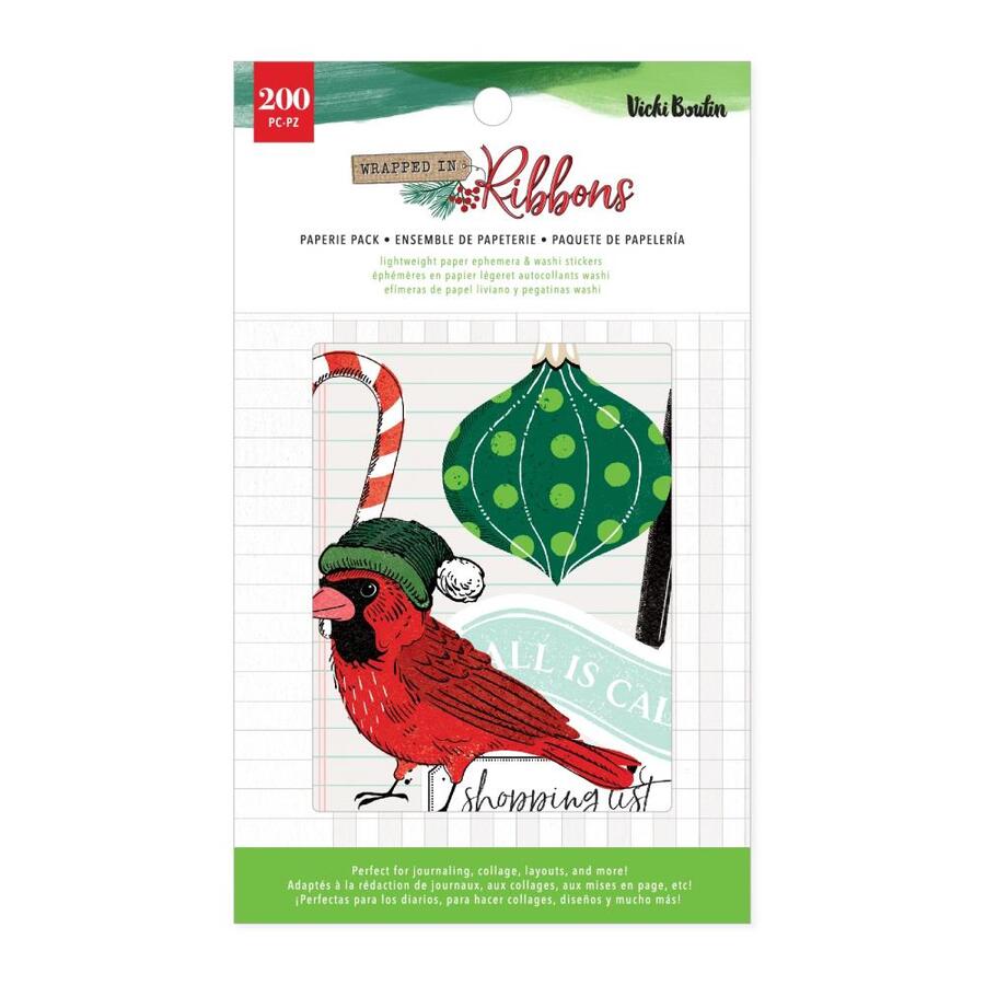 200 pieces of light weight papers, washi stickers and more, from Vicki Boutin's Wrapped In Ribbons range.