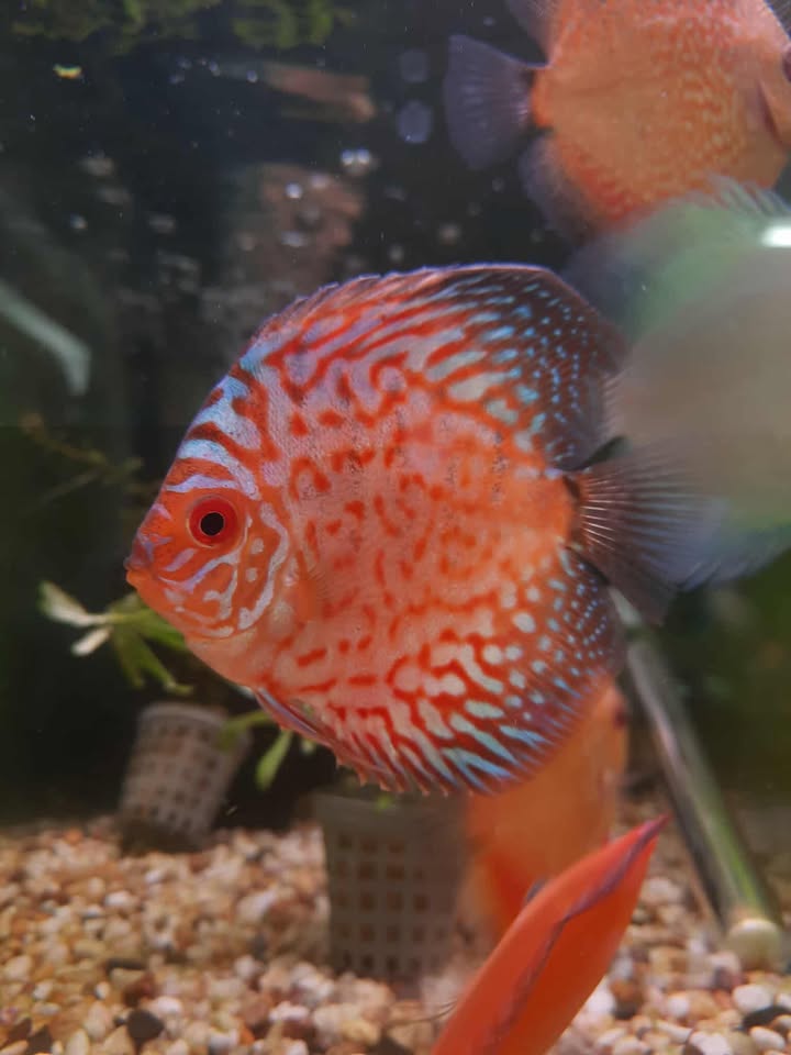 We feed all of our fish our Maximum Pet Supplies branded fish food which consists of a mixture of our Colour Enhancing Flakes, Discus Bits/Slow Sinking Granules, Freeze Dried Brine Shrimp, Live White Worms and Daphnia.