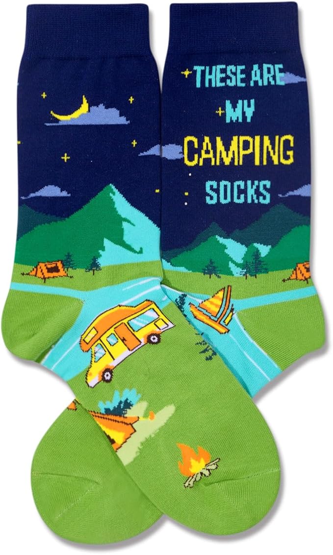 Colours: multi colour (mainly blue and green) with camping fire, motorhome, tent, lake, boat etc.