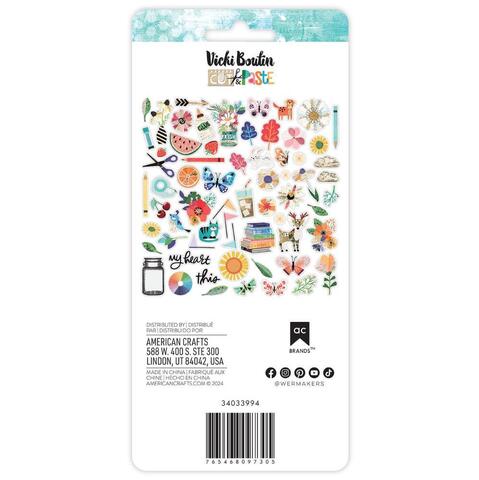 Bright and vibrant pack of 65 ephemera pieces from Vicki Boutin's Cut & Paste range