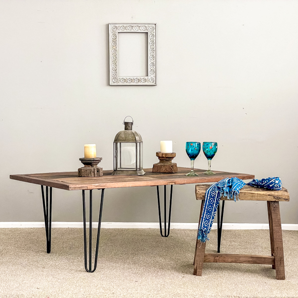 Awesome coffee table made from reclaimed hardwood.
