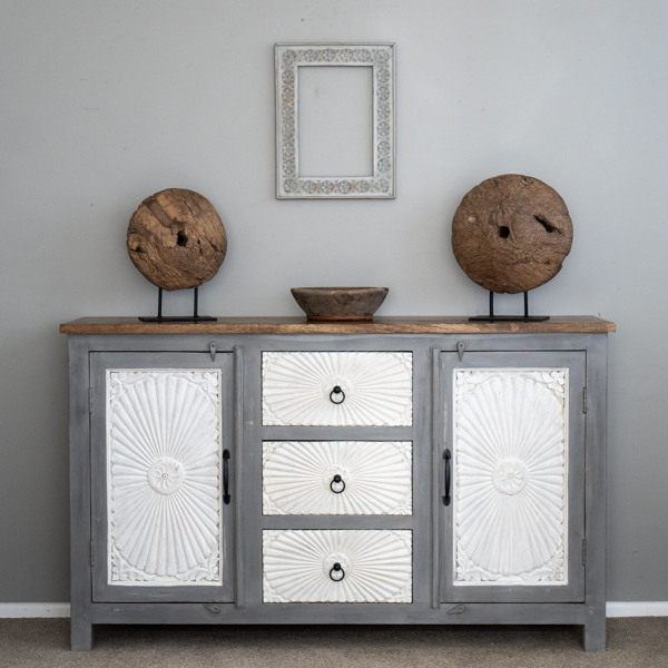 Lovely old timber wagon wheel to add a touch of vintage indian decor to your home.