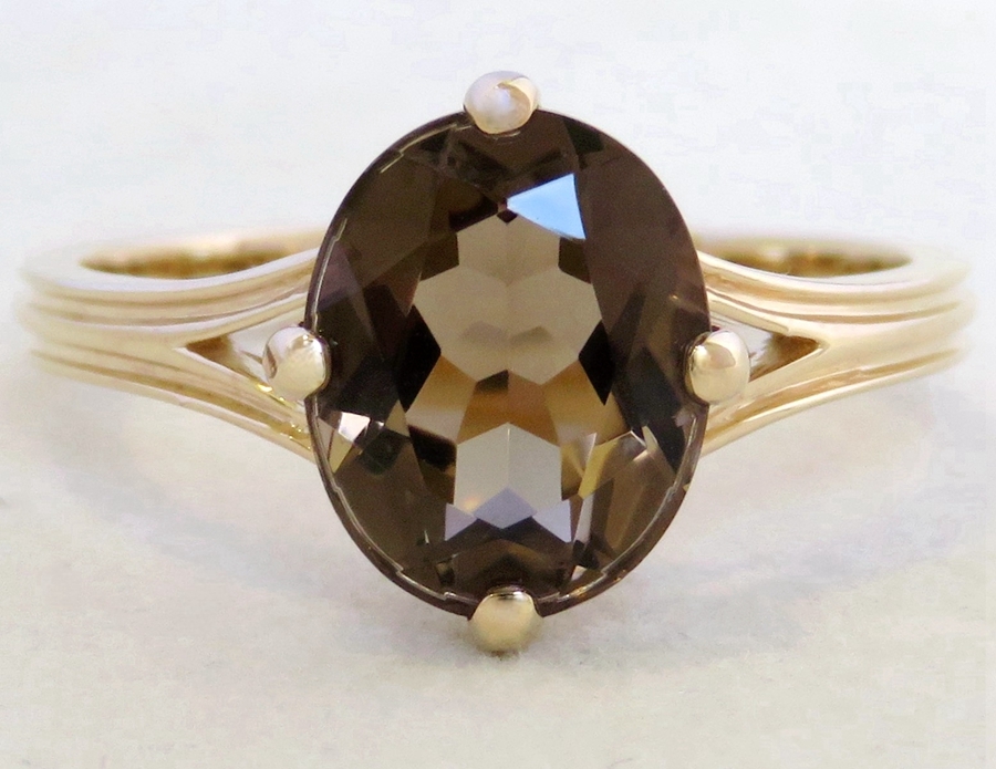 This elegant Smoky Quartz ring features a stunning 2.4ct natural oval-cut gemstone set in warm 9k yellow gold. The soft, earthy brown tones of the Smoky Quartz beautifully complement the polished gold band, creating a timeless and versatile design.