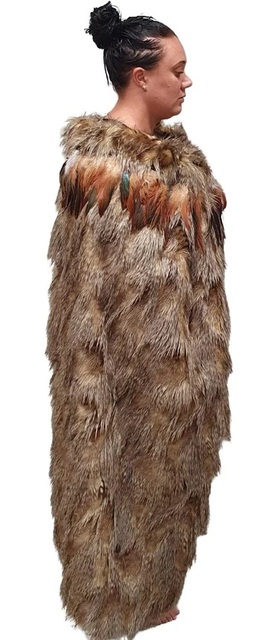 Made in New Zealand from a faux fur (man-made) fabric, fully lined in black cotton. This fabric is designed to resemble bird feathers. Ideal for Weddings, important birthdays, Graduations and Celebrations. Gift this kākahu to someone special or keep it as a family heirloom.