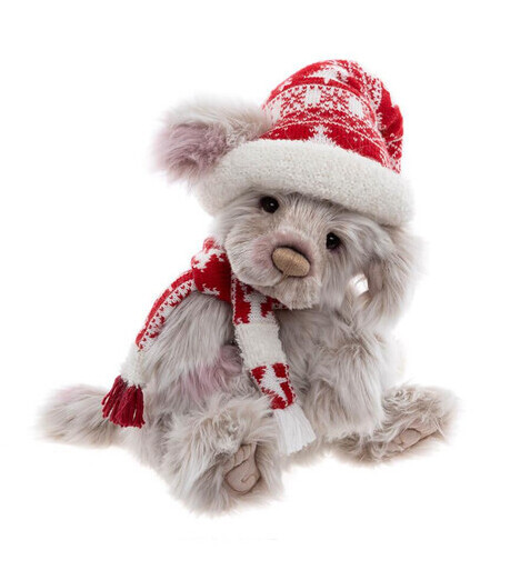 Say hello to Papplewick, an irresistibly adorable puppy crafted from the softest plush imaginable. With his fluffy grey fur accented by subtle lilac-pink patches, Papplewick has a sweet, distinctive charm that makes him truly stand out in any hug. Dressed for the chilly months ahead, Papplewick wears a vibrant red and white woolly hat and matching scarf, adding a festive touch to his cosy appearance. He’s fully jointed and hand-finished with care, featuring beautifully sculpted paw pads that highlight his high-quality craftsmanship and attention to detail.