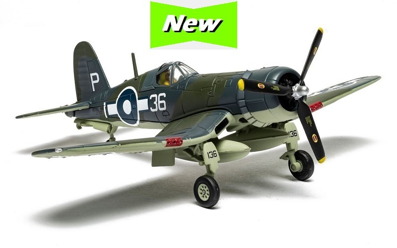 Corsair Mk. II JT537/13-6 of Canadian air ace Sub Lt Donald J Sheppard. 1836 Naval Air Squadron, HMS Victorious, Battle of Okinawa, 1945. Sheppard was one of only two Canadian Navy aces and the Fleet Air Arm’s only WW2 Corsair ace. Diecast model with plastic parts. Rotating prop, pilot figure, and drop tanks. Landing gear can be configured up or down. Approx. 14cm x 17cm (5.5" x 6.75"). Comes with a display stand.