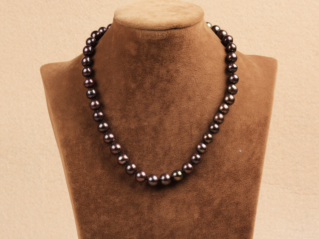 This rich chocolate-brown freshwater pearl strand is a beautiful standout piece. The pearls are a generous 10–11 mm in size, giving the necklace a bold, elegant look. Each pearl has its own natural imperfections, which add to the character and organic feel of the piece.