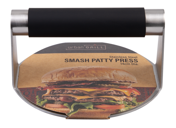 Create perfectly crisp, evenly seared smash burgers with the Urban Grill Stainless Steel Smash Patty Press.
