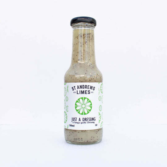 Ingredients; NZ Lime juice, vinegar, canola oil, sugar, garlic, salt, poppy seeds, mustard powder.