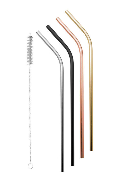 These stainless steel bent drinking straw set is the environmentally friendly alternative to plastic straws.