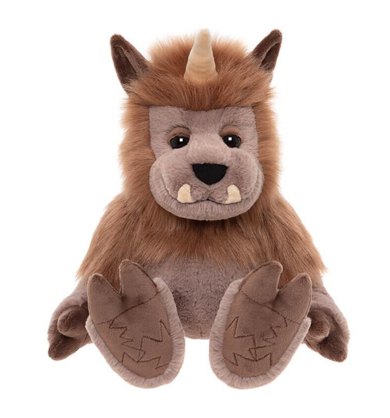 With his plush brown fur, wide, friendly smile and single proud horn atop his head, Quarry brings a touch of rugged charm to every cuddle. His cosy, non-jointed body and oversized paws make him perfect for bedtime hugs, playful adventures, or simply sitting guard on your pillow when night falls.