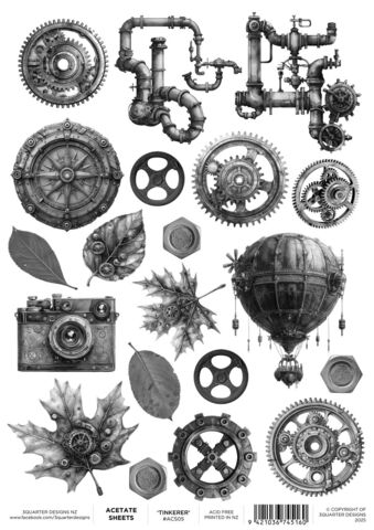 Printed acetate sheet that coordinates well with the Rustic tinkerer pack. A4 sheet. Cut and use as, or colour to match your project.
